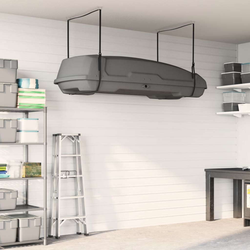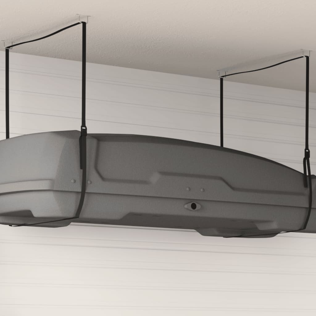 The roof box lift is a simple and easy way to store your kayaks off the ground safely and efficiently. Durable material: The straps are made of nylon, which is extra strong and can firmly hold the kayaks or boards in place without causing any damage.Flexibility adjustment: The cargo box ceiling storage can be easily adjusted to fit your requirements, and its size adaptability makes it suitable for all manufacturers.Easy to store: The roof box strap allows you to easily store this product in a small corner when not in use, which does not take up much space.Space-saving: This garage storage hoist is suitable for most canoes, kayaks, ladders, or bikes. You can use it to raise them to the ceiling, saving space.