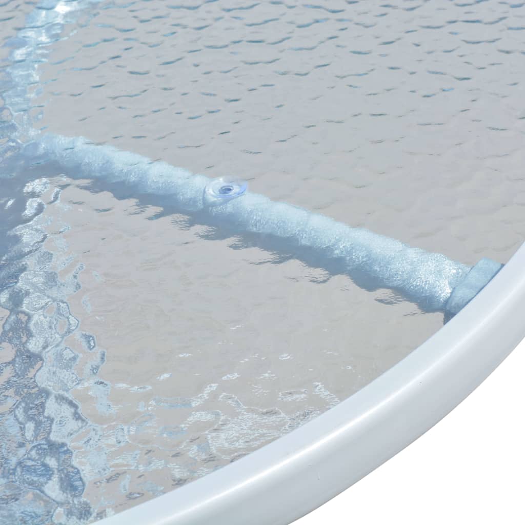 This sophisticated garden furniture set will become the focal point of your garden, patio, or dining room. The comfortable chairs are constructed from high-quality powder-coated steel. Thanks to the strong textilene fabric, our chairs are weather-resistant and easy to clean. The chairs are stackable to save space. The table has a 5 mm thick tabletop made of tempered ripple glass, on which you can place drinks, snacks or decorative items. It also has a sturdy powder-coated steel frame that is durable and easy to maintain. Assembly is easy. Delivery includes 1 table and 2 textilene chairs. Note: We recommend covering the set in the rain, snow and frost.
