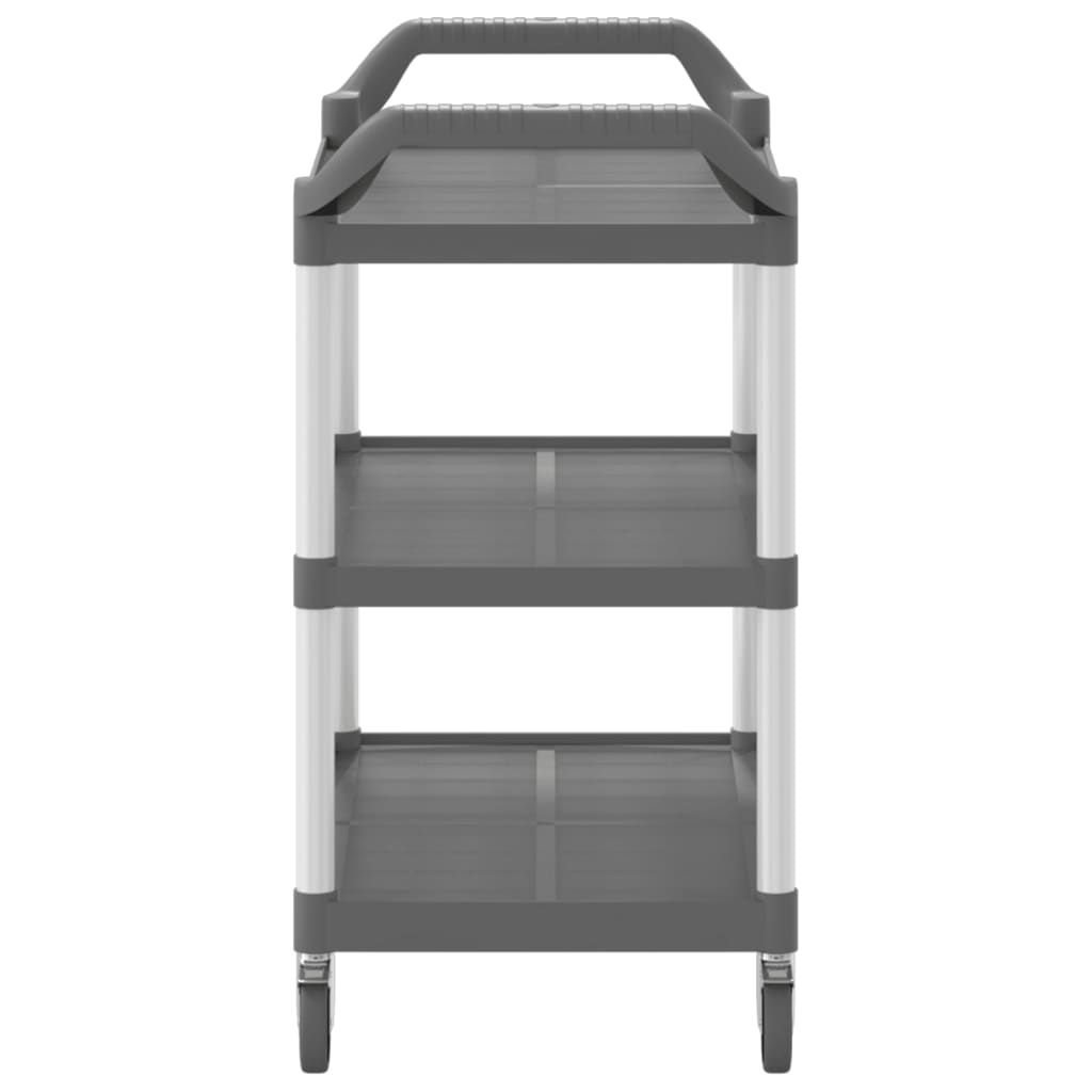Create a distinctive touch and add more storage space with this 3-tier trolley. Durable material: Polypropylene (PP) is a popular plastic that is also one of the most used materials in outdoor furniture. It's lightweight, tough, and resistant to impact. Also, the aluminium tubes ensure the stability and sturdiness of the trolley.Ample storage space: The kitchen trolley, featuring 3 shelves, provides sufficient space to place snacks, drinks, vases, fruit bowls, or other decorative items.Flexible movement: The drink trolley comes with 4 rubber wheels and 2 handles, making it easy and convenient to roll it wherever you need it. Additionally, 2 wheels are lockable for added control and safety.Wide applications: This bar trolley can be used in different settings, such as the kitchen, dining room, living room, or garage, and can be used as a drink cart, kitchen cart, or tool trolley. Good to know:The rubber mallet is required during the installation (not included in the delivery).