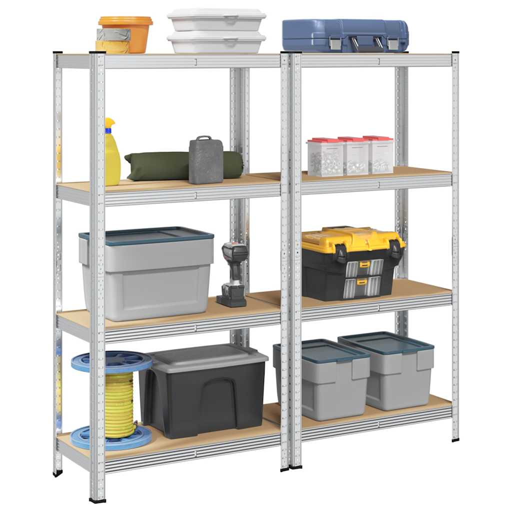 4-Layer Storage Shelves 2 pcs Silver Steel&Engineered Wood