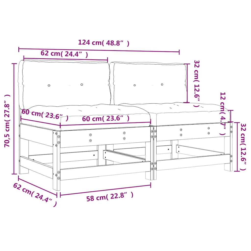 Middle Sofas with Cushions 2 pcs Grey Solid Wood Pine