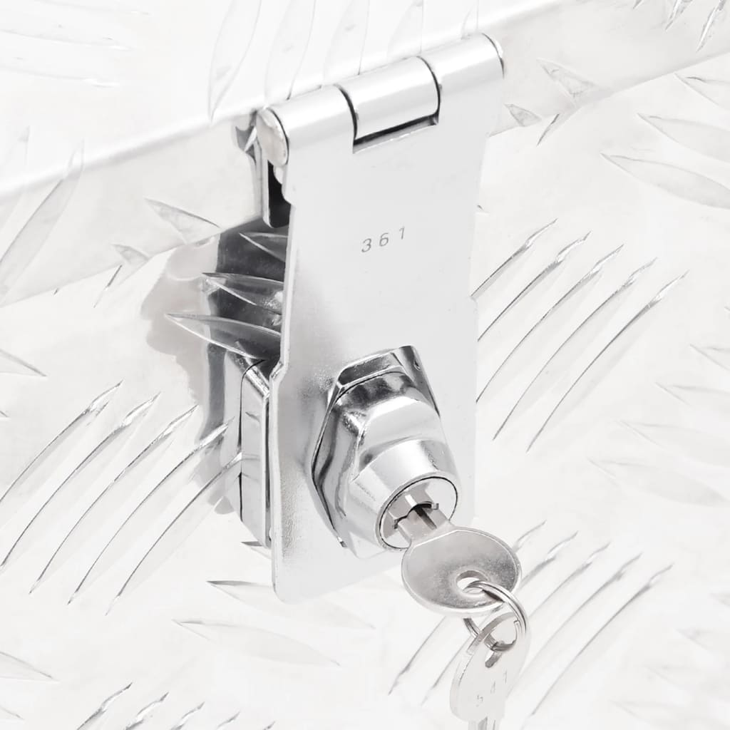 This all-purpose aluminium storage box is an ideal choice for packing, storage and transportation. Rust-resistant aluminium: The trailer box is made of corrugated aluminium sheet, making it rust-resistant and durable.Spacious interior room: The toolbox has a spacious interior room for storing your tools, accessories, and other gears and tools.Locking system: The storage case is equipped with a locking system for added safety.Practical handle: The practical handle on the organiser makes it easy to carry anywhere with you.Compact design: You can store the aluminium box in your vehicle and garage or bring it on your next camping trip, thanks to its lightweight and compact design.